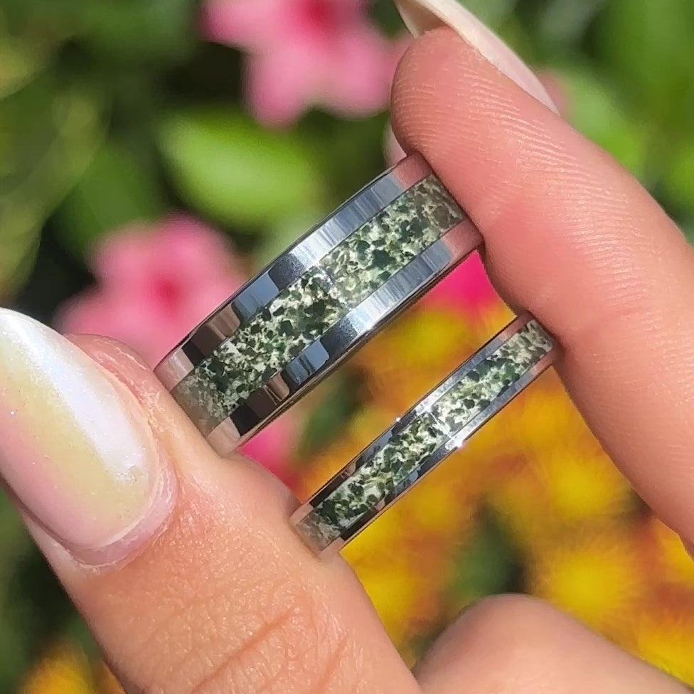 The agate and silver moss agate couple's ring set – a breathtaking embodiment of natural beauty and eternal love. Crafted with the utmost care and attention to detail, this ring set is more than just jewelry – it is a reflection of the deep connection between two souls.