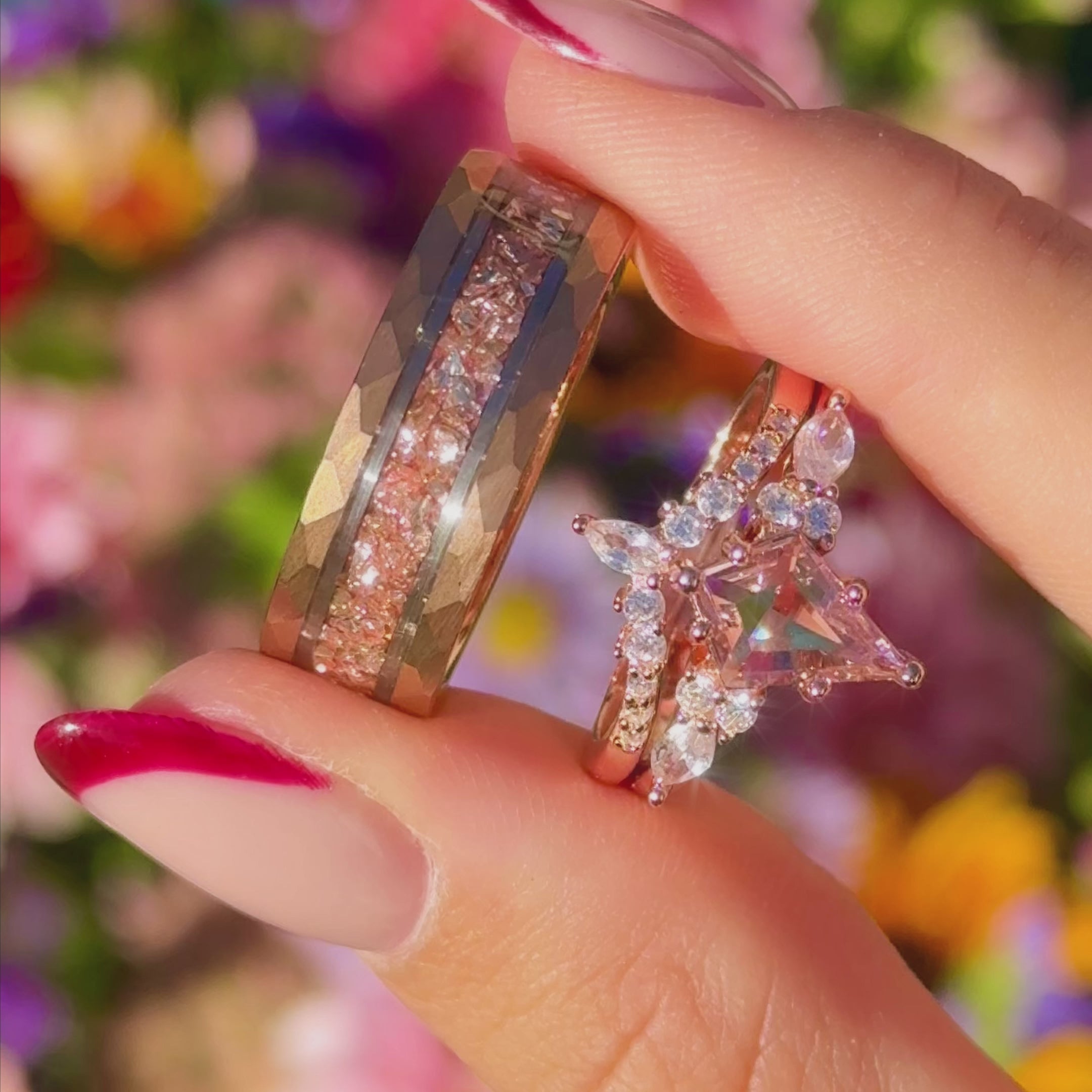 Capture the gentle beauty of love's first light with the Blush Horizon ring for women, adorned with radiant morganite. With its delicate pink shimmer, this ring symbolizes the beginning of endless love and new beginnings. The morganite stone sparkles with warmth and romance, perfect for couples whose love is both tender and timeless.