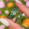Crafted for couples who appreciate the beauty of nature, this ring set offers both style and substance. Our Moss Agate couple's ring set features an enchanting green moss agate inlay on a sleek black tungsten band, symbolizing a love that is both grounded and eternal.