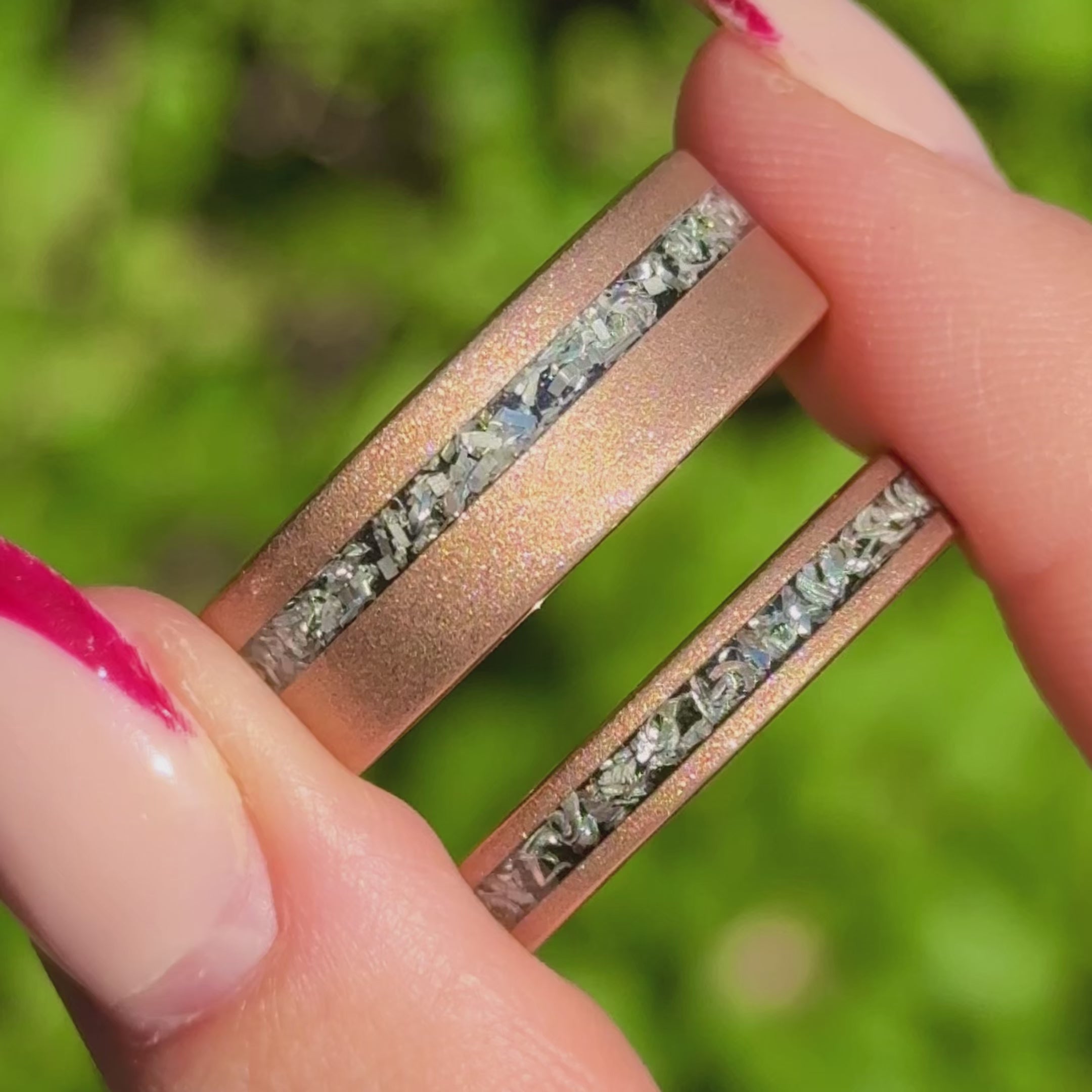 - Material : Tungsten (rose gold plated) and meteorite inlay