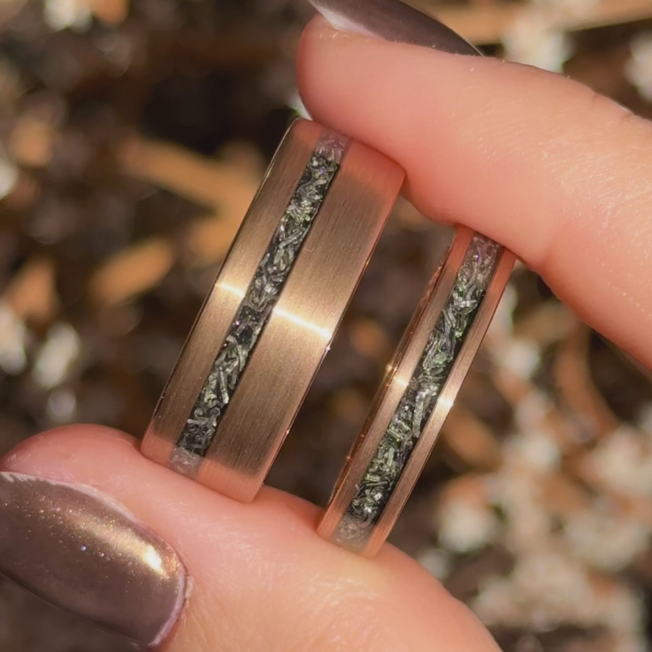 - Material : Tungsten (rose gold plated) and meteorite inlay
