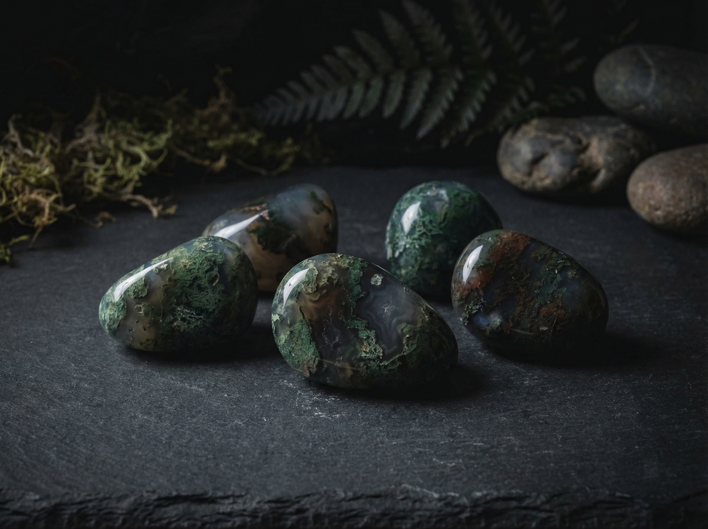 Celebrate your love with the grounding beauty of moss agate—a stone prized for its deep connection to nature and emotional balance. Each piece of moss agate is truly one of a kind, with delicate green inclusions reminiscent of small landscapes or moss-covered forests—a symbol of growth, renewal, and a strong shared foundation.