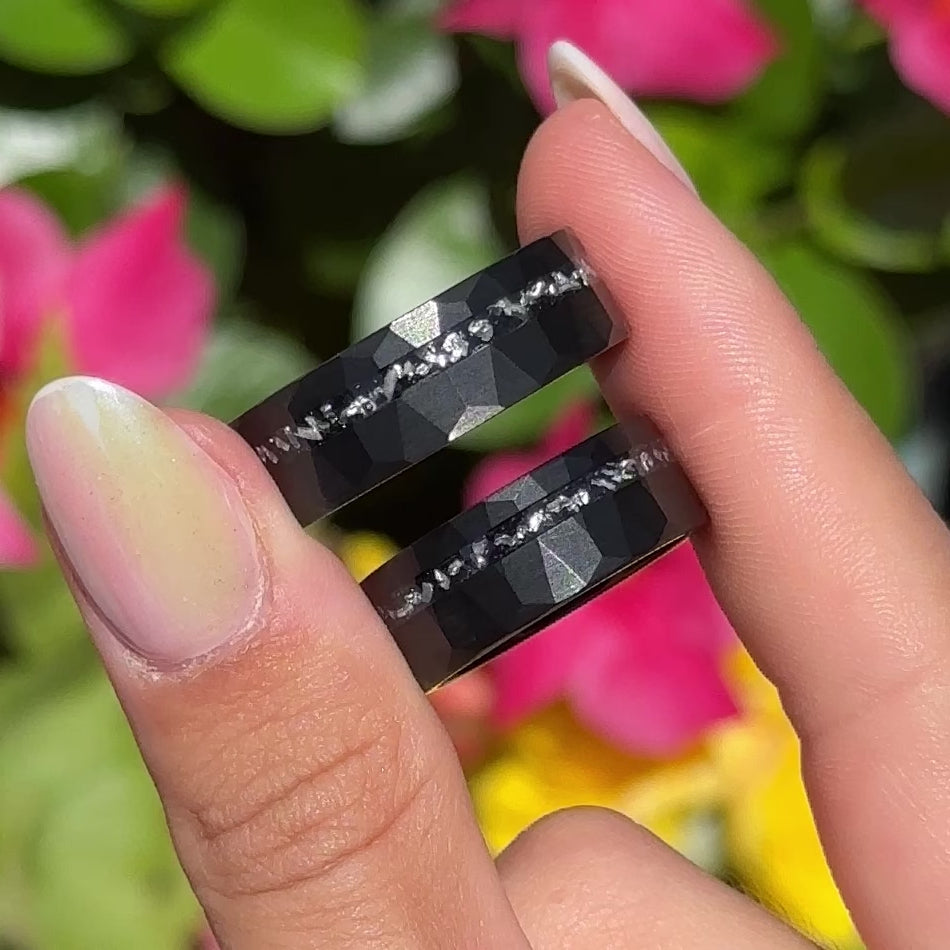 Blacksmith pairing ring set – a celestial journey of love and unity. Crafted with precision and passion, this set is more than just a pair of rings – it's a cosmic symphony of two souls intertwined in the infinite expanse of the universe.
